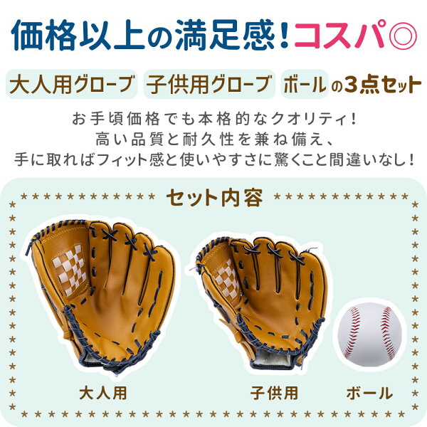 【25人に1人当たる★全品半額のチャンス!24~25日迄】 グローブ セット 野球 親子 グローブセット キャッチボールセット 野球グローブ セット 少年 子 キッズ 子供用 大人用 ボール付き キャッチボール ジュニア用 成人用 野球ボールセット 低学年 ソフトボール 練習