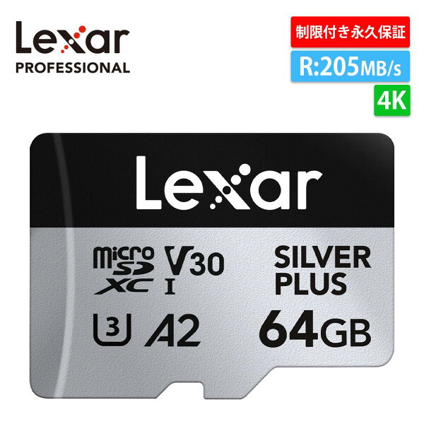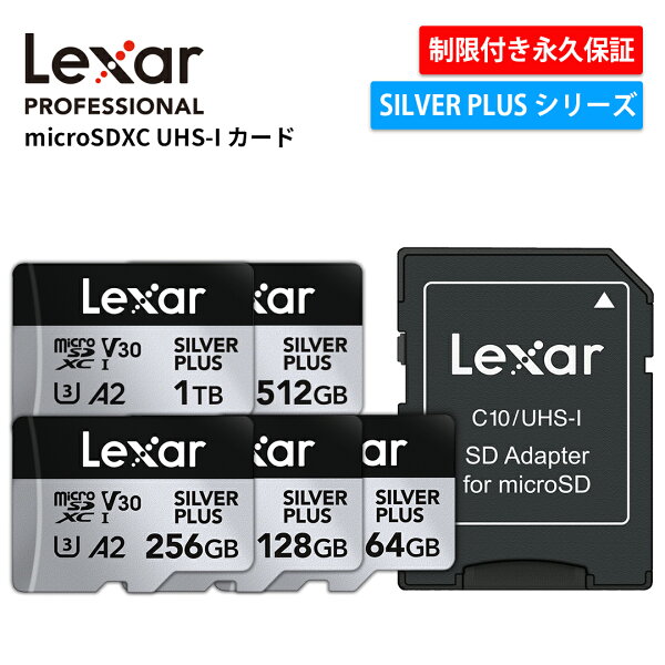 【正規代理店】Switch対応 Lexar Professional SILVER PLUS microSDXC UHS-I カード 64GB 128GB 256GB 512GB 1TB マイクロSDカード V30 A2 4K 変換アダプター 高速性能 Switch SDカード 高耐久 ドローンSDカード 録画 HD動画 撮影 スマホメモリ 永久保証