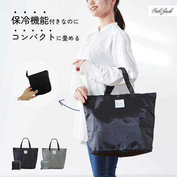 【公式】Posh Sack コンパクト保冷エコバッグ 10L 持ち運び 折り畳み 保冷 保温 エコバッグ トートバッグ ファスナー付 コンビニ お買物 ECO SDGs シンプル おしゃれ ブラック FUJI JAPAN Polar Bear 富士 楽天倉庫から発送