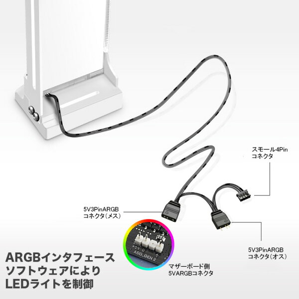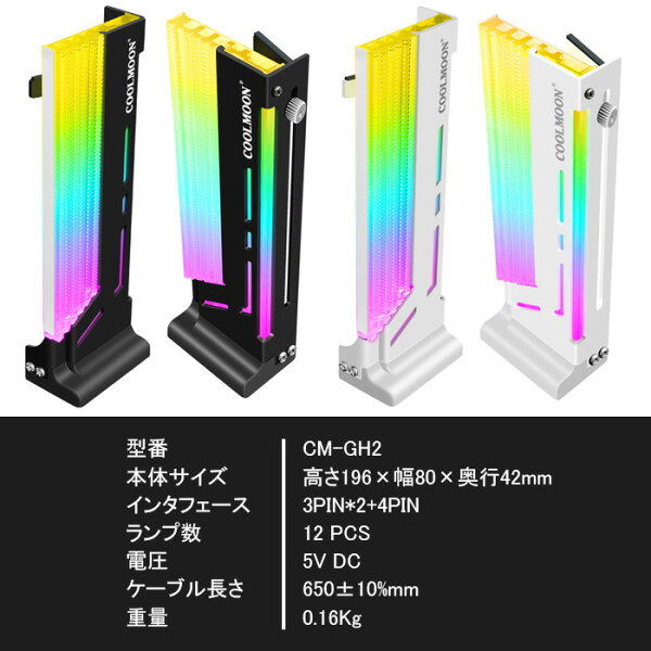 グラフィックボード サポートホルダー ARGB対応 CM-GH2 ホワイト ブラック アクセサリー LEDライト 5V ARGB SYNC 1600万色 グラフィックボード NVIDIA GeForce AMD Radeon デスクトップパソコン内部用 ゲーミングPC用 PCパーツ【新品】