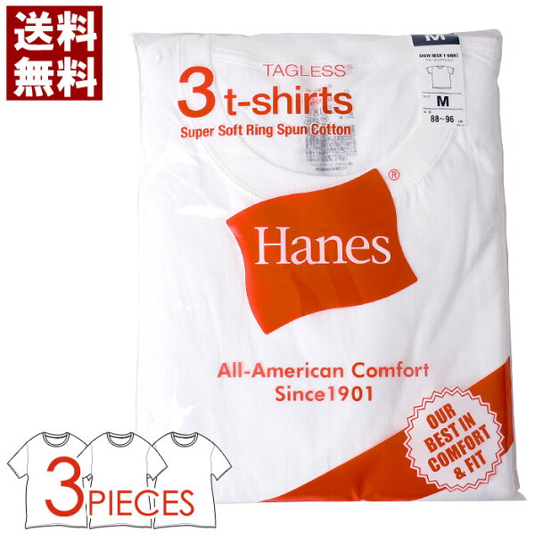 Hanes ヘインズ メンズ 半袖 tシャツ 3Pパック 3枚組 インナー 白 無地 クルーネック カットソー ブランド 送料無料 通販A3【2A0334】
