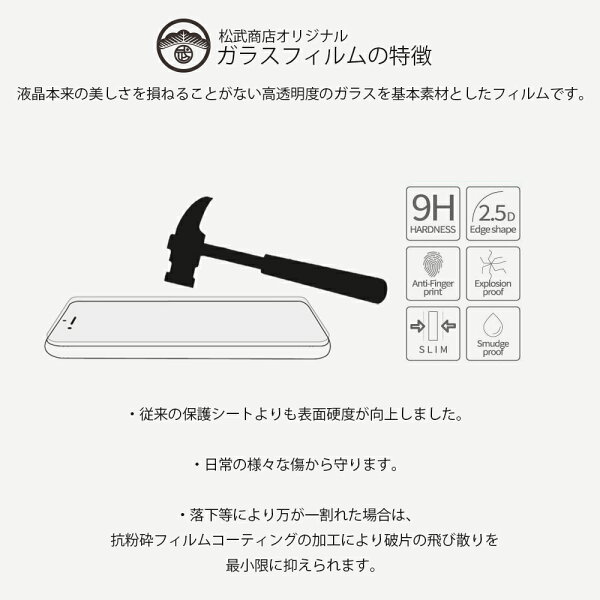 | 特徴 | 【機種専用デザイン】 本ガラスフィルムは本体端部のカーブによるフィルム剥がれや、浮き上がりの防止、スマホケースの装着スペースを確保するため、本体の曲面の縁にスペースを残すデザインとなっています。 【衝撃吸収パーフェクト】 ガラスプロテクターはそういった万一の事故からもある程度守ってくれますが、耐衝撃性に優れていることが多く、ディスプレイを強固に守ることができます 【自動吸着タイプ】 耐油性、撥水性に優れ、指紋などの汚れがついても簡単にメンテナンスできます。肝心な液晶画面には糊を使わずに自動吸着することができるので、気泡がなくキレイに貼れます。 【ケース(カバー)との干渉なし】 「どんなケースとも相性抜群、安心のサイズ設計」なガラスフィルムですので、「他社でケースは買ったけれども干渉しないか心配」という場合には是非ご検討いただければと思います。 【スムーズなタッチ】 液晶画面の発色を損なうことはなく、曇りもない最適な厚さなので、滑らかなタッチ感、スムーズな操作感を実現できます。 【商品セットサポート】 貼り付け説明書に詳しい貼り付け手順が記載されておりますので、貼り付けの前に、ご覧になっていただければ幸いです。初心者でも簡単に貼れる。 | |||||