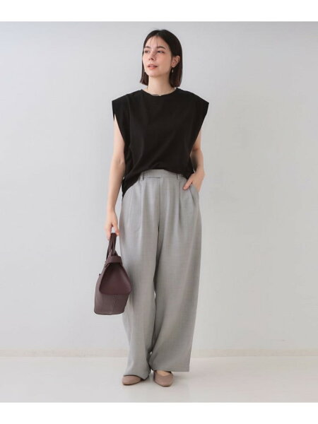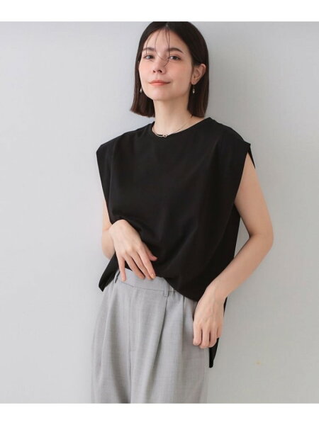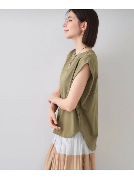【SALE/40%OFF】ボクシーノースリーブカットソー【洗濯機洗い可】 OPAQUE.CLIP オペークドットクリップ トップス カットソー・Tシャツ ホワイト カーキグリーン ブラック【RBA_E】[Rakuten Fashion]