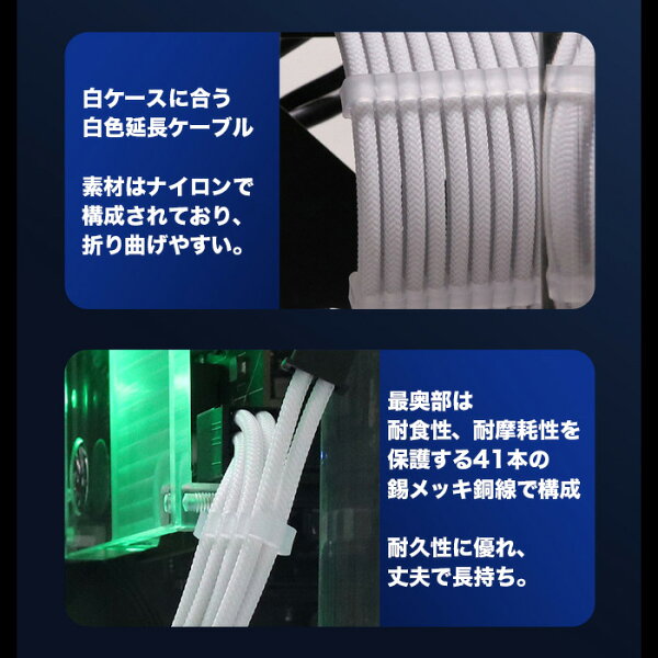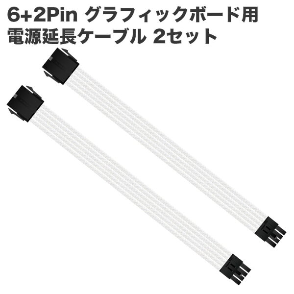 【送料無料】6+2Pin GPU用 電源延長ケーブル 2本セット デスクトップパソコン内部用 ホワイト コネクタタイプ:メス-オス ゲーミングPC用 PCパーツケーブル【新品】