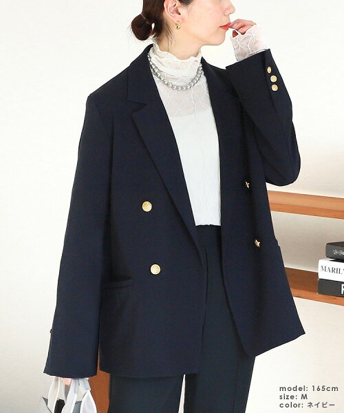 ツイル/ツイードテーラードジャケット(zn31370) レディース アウター ジャケット スーツ テーラード ダブル カジュアル シンプル 楽ちん 長袖 卒業式 卒園式 オケージョン フォーマル reca レカ 宅配便発送 k