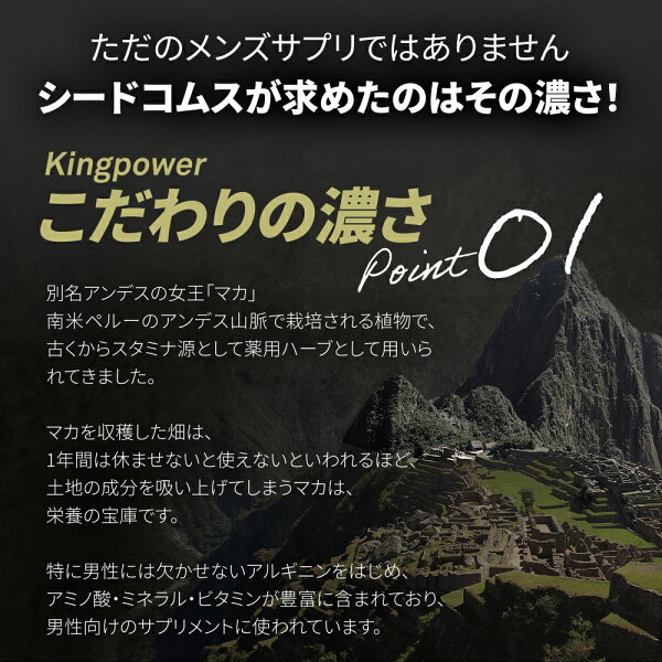 【12/26終了★タイムセールで1,298円】20倍濃縮マカ+100倍濃縮トンカットアリ配合 キングパワー 約6ヶ月分 亜鉛 すっぽん アルギニン シトルリン サプリ サプリメント 男性