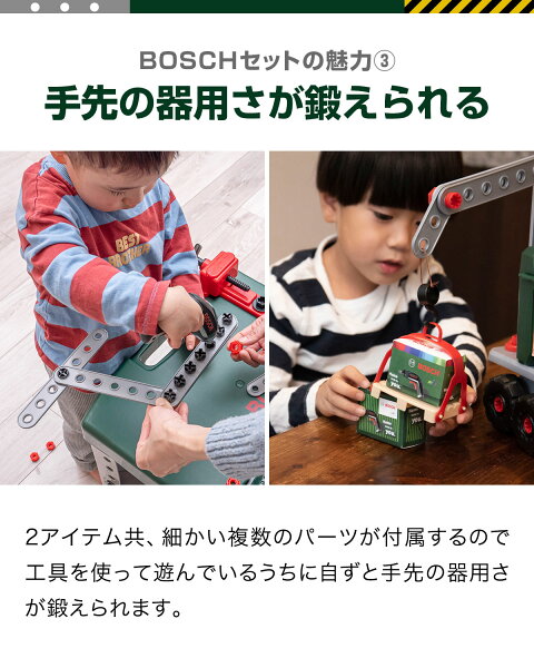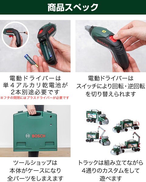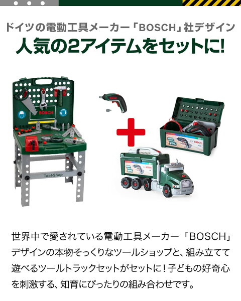 ごっこ遊び 工具セット おもちゃ BOSCH ボッシュ ツールトラック 8640 / ツールショップ 8676 セット 組み立て 分解 知育玩具 ままごと ブロック 車 トラック はたらく車 ミニカー 電動 ドライバー ハンマー DIY 大工 まねごと 1年保証 ■ [送料無料]