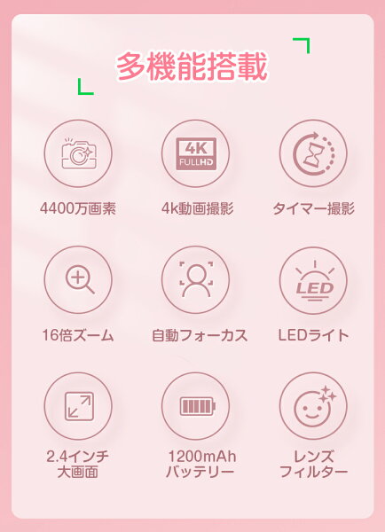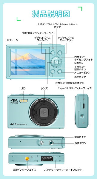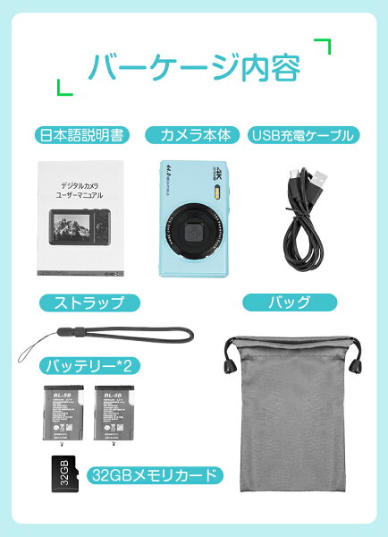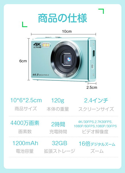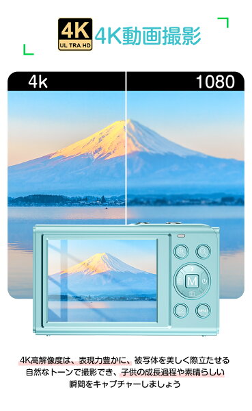 【32GB SDカード無料贈呈★wifi対応★6400万/4400万画素】デジタルカメラ キッズカメラトイカメラコンデジ16倍ズーム4K高解像度タイマー撮影2.8/2.4インチ大画面コンパクトデジカメ1080PAF子供カメラ初心者学生入学祝いこども用女の子男の子操作簡単