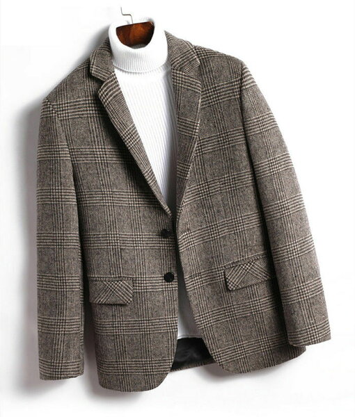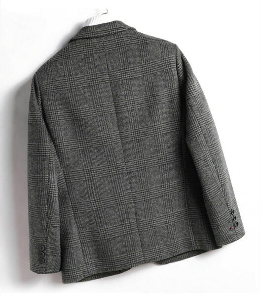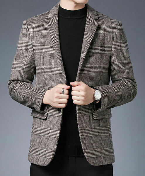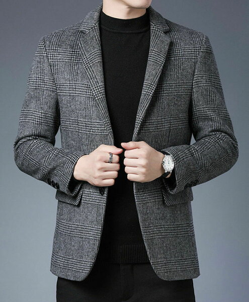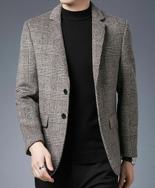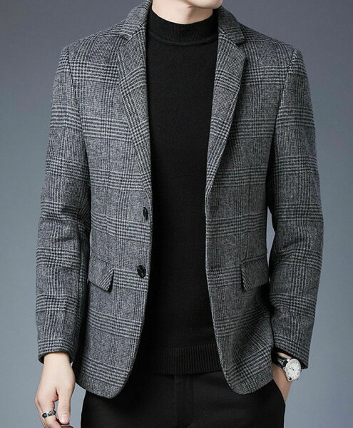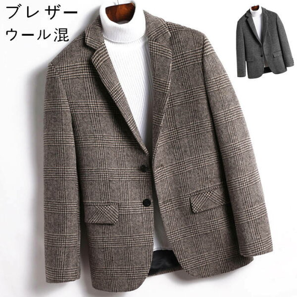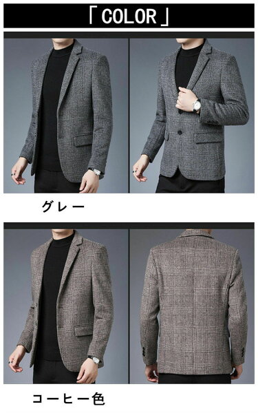 【特典あり】ジャケット メンズ ウール混 スリムジャケット チェック柄 テーラードジャケット ダッフル生地 ブレザー カジュアルジャケット 細身 厚手 ビジネスジャケット ショート丈 チェスターコート 2つボタン スーツ 秋冬用 アウター 紳士品 ギフト