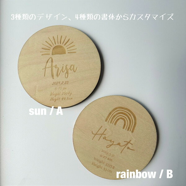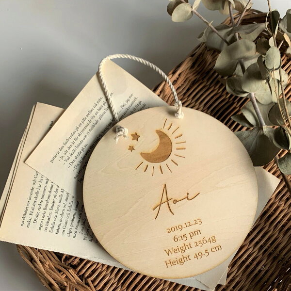 メモリアルプレート memorial plate 命名プレート 命名書オーダー 命名 出生情報 オーダー ウッドプレート 名入れ 出産祝い ルームプレート ニューボーンフォト justborn 100日 命名書 虹 太陽 月 sun rainbow moon 海外インテリア【memorial wood plate】