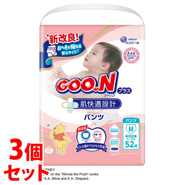 《セット販売》 大王製紙 エリエール グーンプラス 肌快適設計 パンツ Mサイズ (52枚)×3個セット 6kg-12kg ベビー紙おむつ パンツタイプ オムツ