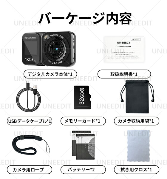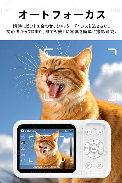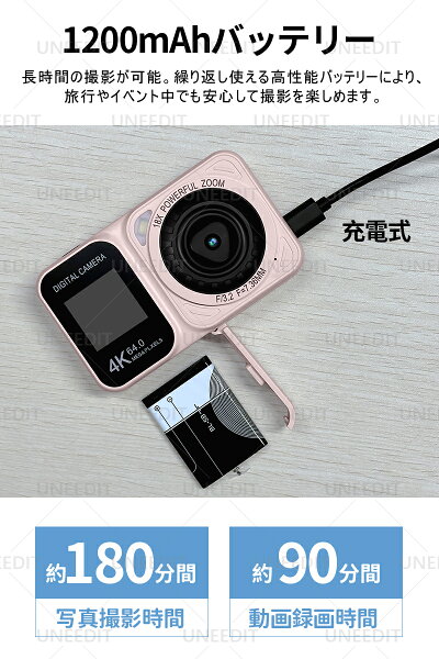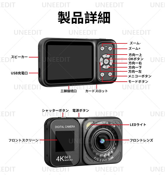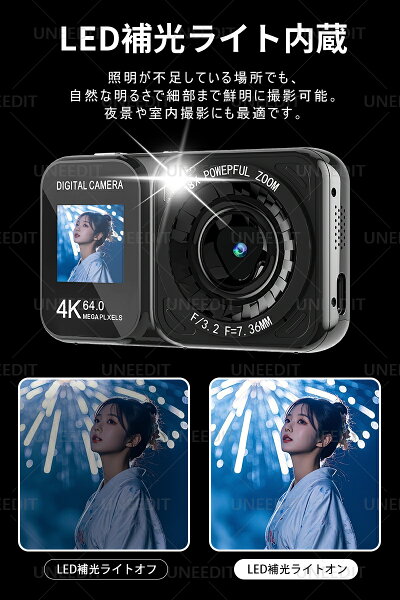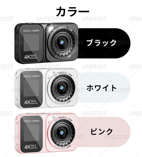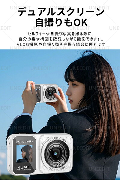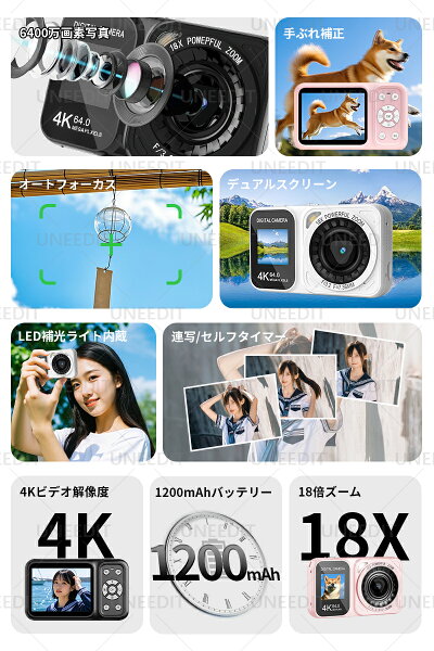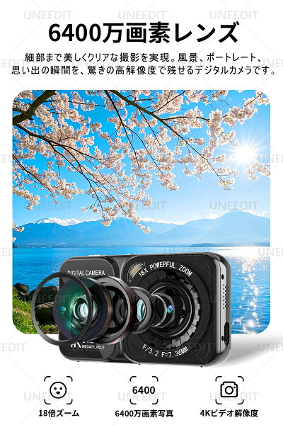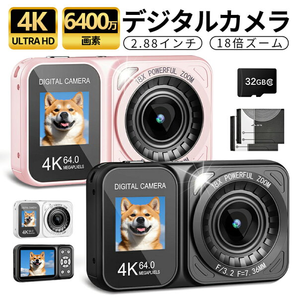 デジタルカメラ 6400万画素 4K録画 18倍ズーム 2.88インチ デュアルスクリーン 64G SDカード付き スマホ 転送 レトロ 自撮り 高画質 コンパクト デジカメ 子供 キッズ カメラ オートフォーカス 手振れ補正 AF 学生 初心者 修学旅行 男の子 女の子 孫 プレゼント 軽量