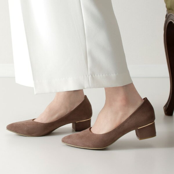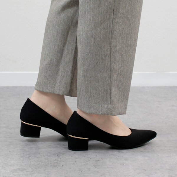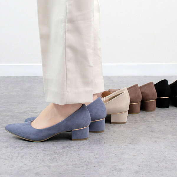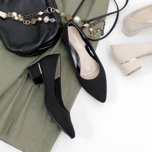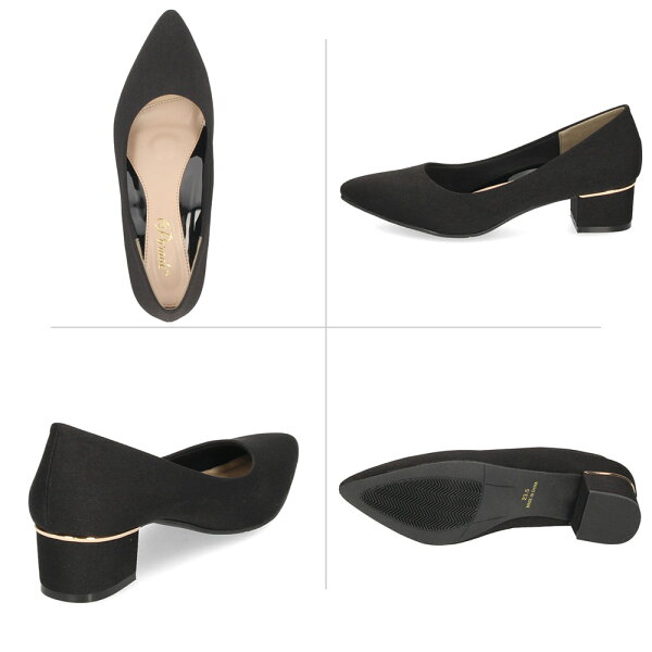 【初売り★クーポン発行中】 パンプス 痛くない ローヒール ブラック 黒 4センチ スエード 太ヒール チャンキーヒール ポインテッドトゥ 飾り ドークレ 22cm 極ふわっ 21114 Parade