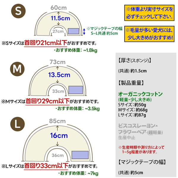 ※毛量が多い場合や頭の形が大きい愛犬には少し大きめのサイズをおすすめいたします。
