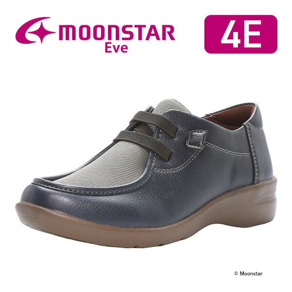 【1/9 20:00-1/16 1:59 10%OFFクーポン】ムーンスター イブ レディース コンフォート シューズ 幅広 4E 撥水加工 ガラス防滑 抗菌防臭【残りサイズ22.5cm23.5cm】【セール再値下げ45%OFF】EVE 326 ネイビー