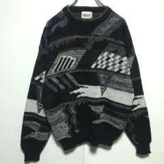 80s 90s PERSPECTIVE デザインニット 幾何学模様 N72