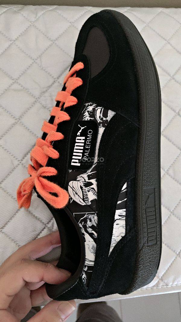 Bought from two sellers, consolidated into 1. Efficient and easy! Though it can take more than a week to arrive. I am happy and excited. Puma X Monster Hunter Cap. True to size, unique strap and cute Neko in front with MH logo at the back. Puma X Bleach Palermo Deep black with orange tint and laces. True to size, Packed well and neat. Pairs well with the shirt.