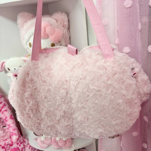 I recieved these two cute fluffy sanrio bags and I love them so much ! they compliment my room really well and I love the soft fluffy feeling. both bags were in great condition and I love the shades of pink and polka dot. the bags were packaged very securely and I was so happy with receiving my order fast !