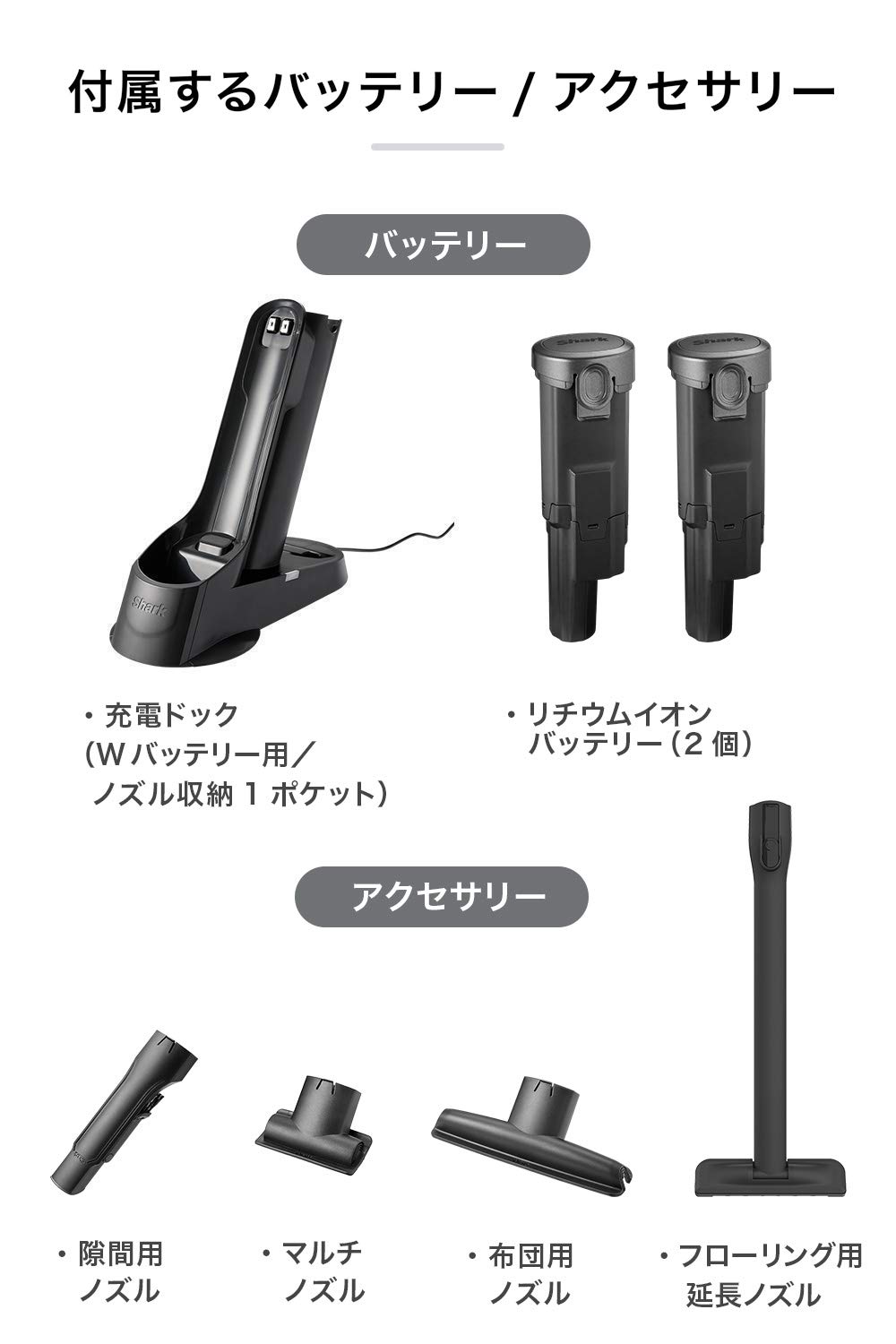 | 付属品: | EVOPOWER ハンディクリーナーリチウムイオンバッテリー充電ドック(ノズル収納1ポケット)/マルチノズル/隙間用ノズル/布団ノズル/フローリング用延長ノズル |