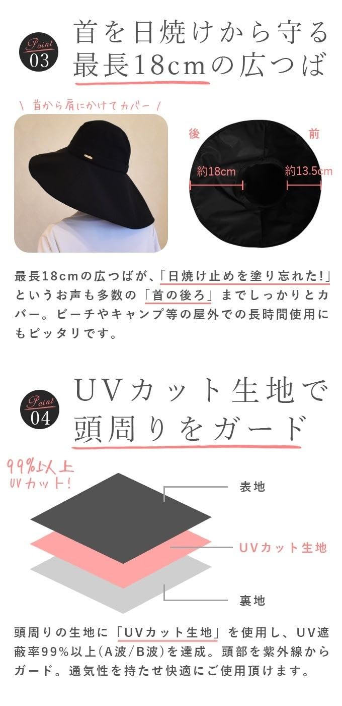 | 特徴: | [日焼け防止, 通気性, 速乾, ワイドブリム] |