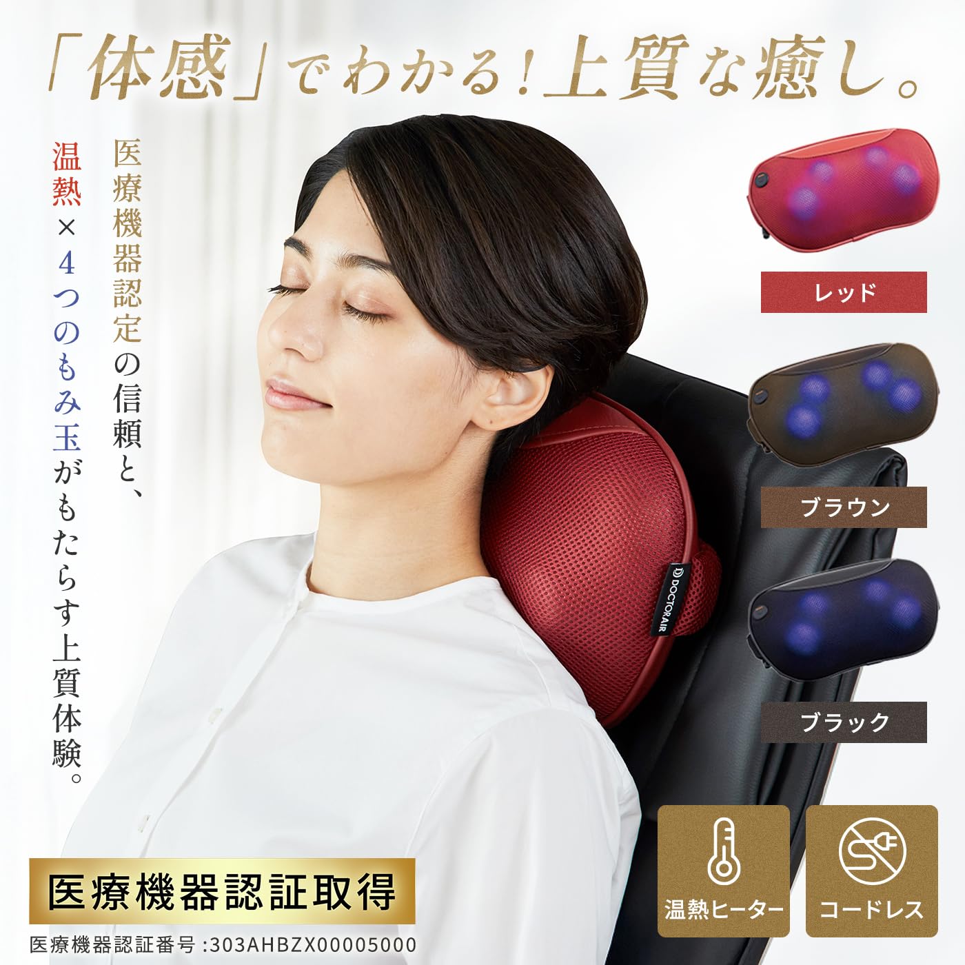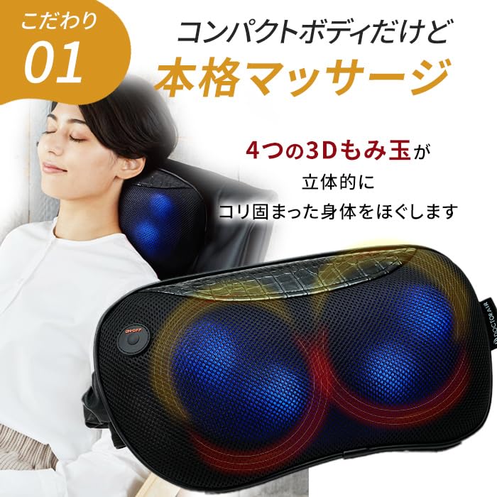 | 特殊機能: | 【商品詳細】パッケージ内容:3DマッサージピローS MP-06 本体、ACアダプター、取扱説明書 / 保証期間:12ヶ月※正規販売店からの注文に限り保証の対象となります。なお、注文番号が保証書の代わりとなります。 |