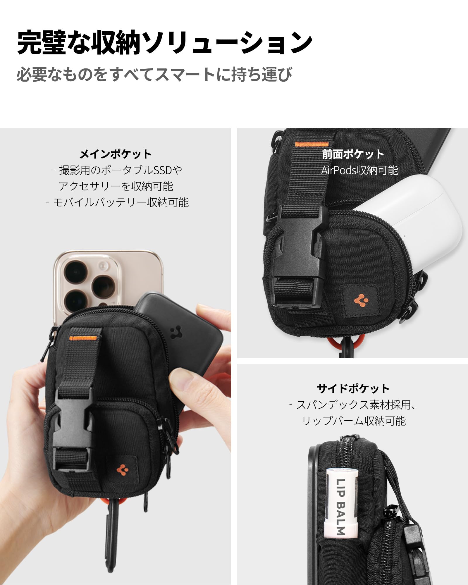 | 特徴: | ① 背面マグネット ② 小物収納(SSD、リップクリーム、AirPodsなど) ③ 滑り止めシリコンパターン |