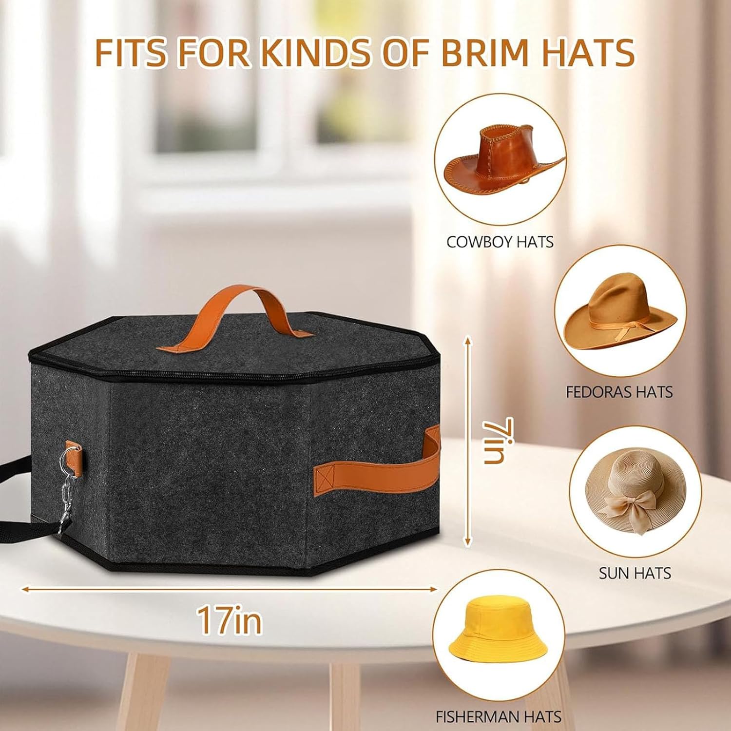 この積み重ね可能な帽子収納ボックスは、強化段ボールパネルと破れにくいオックスフォード生地を使用した広々とした 17 デザインが特徴で つばの広い帽子が旅行中に潰れるのをしっかりと保護しながら 5 つのフェルト帽子を収納できます。