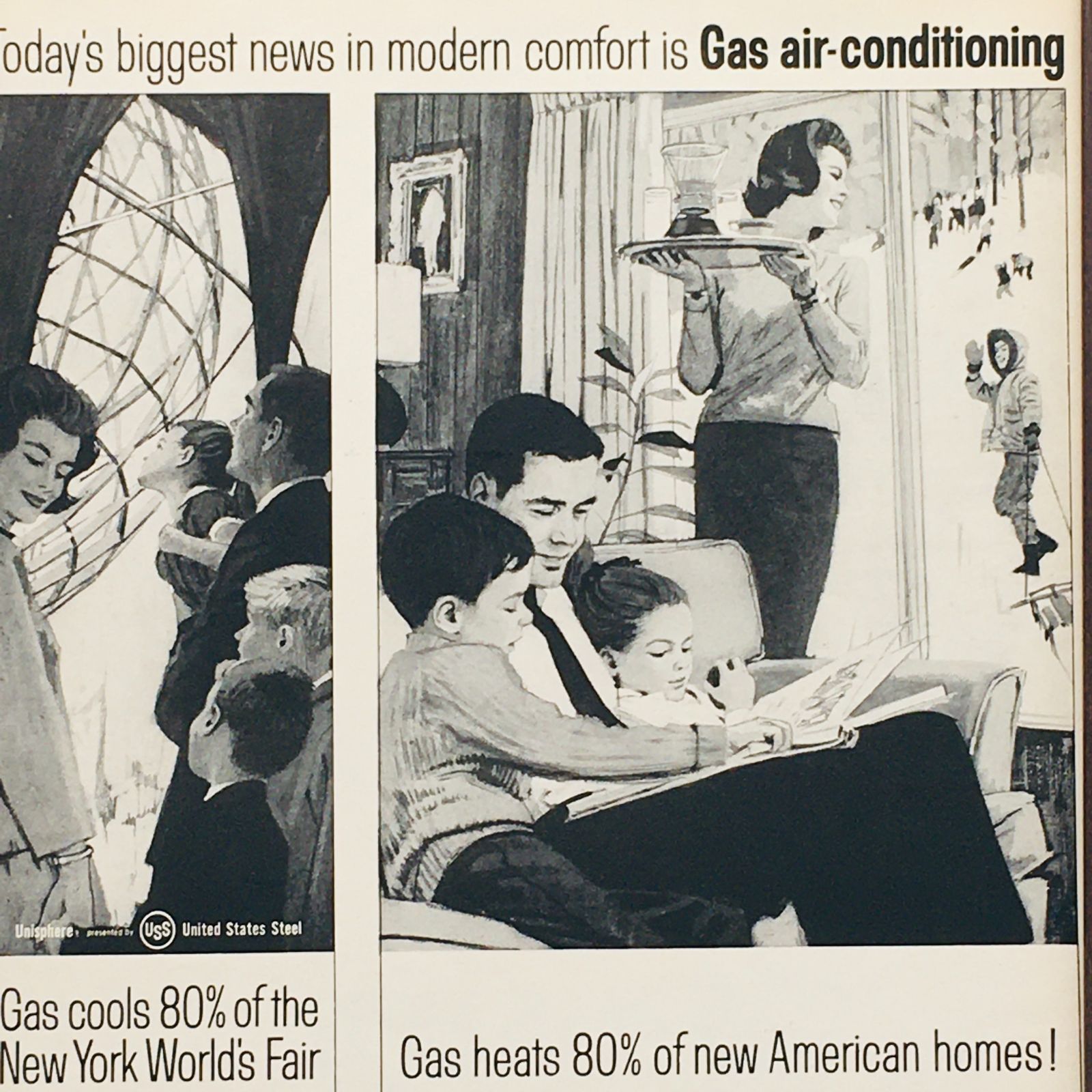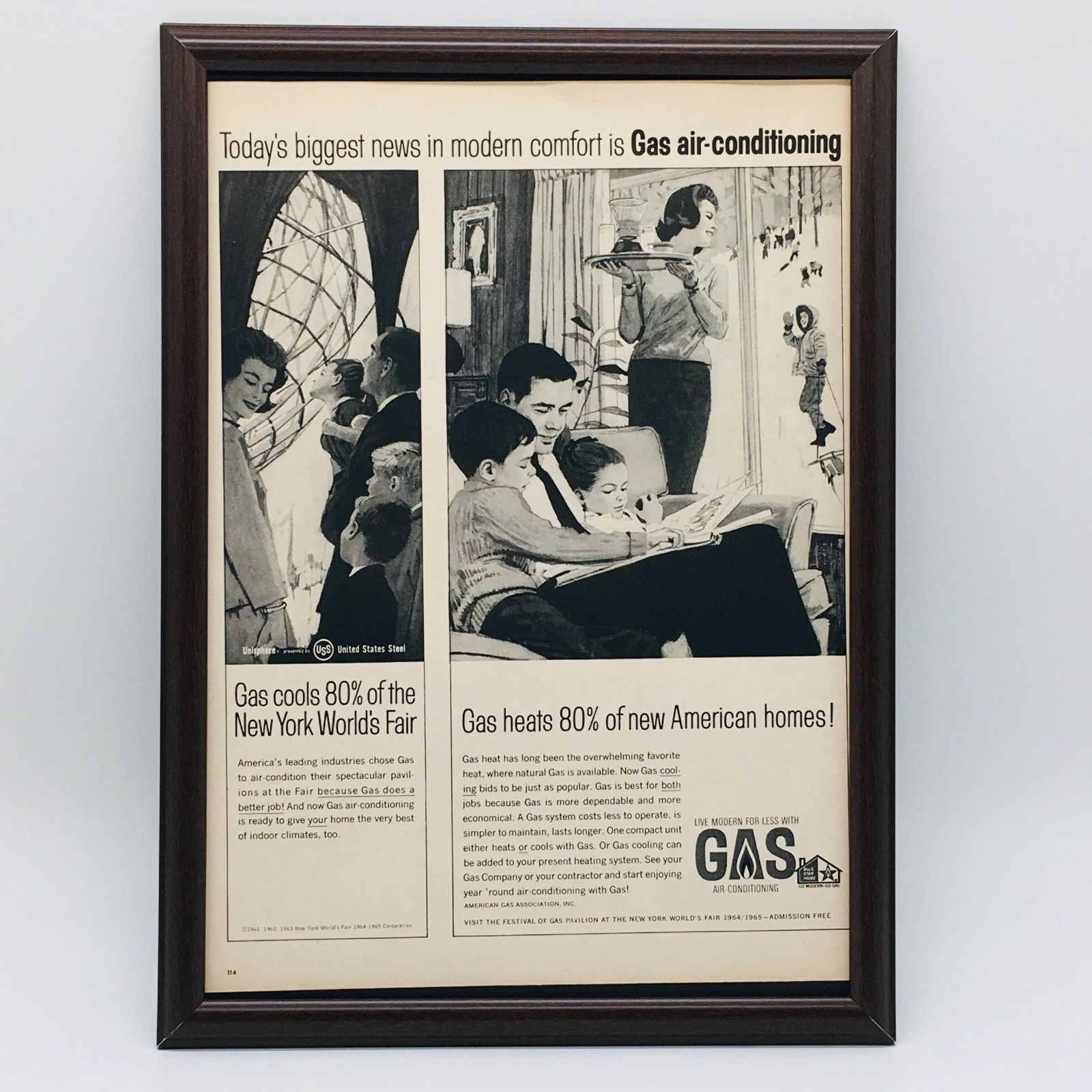 ビンテージ 広告 ポスター  『 ガスエアコン 』 1960's オリジナル 額付 アメリカ 当時物 輸入雑貨 ヴィンテージ アドバタイジング レトロ 390mm × 283mm ( AZ678 )