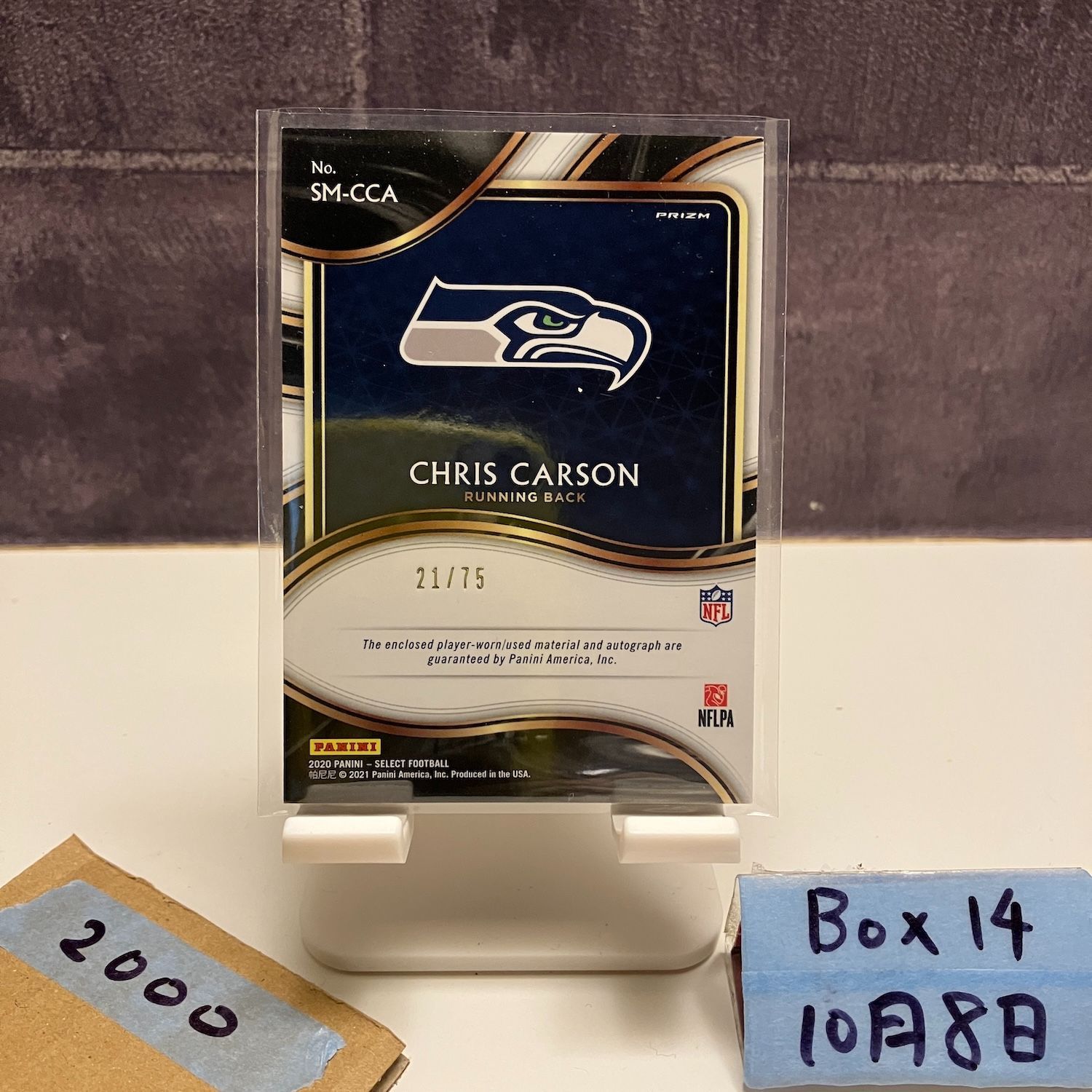 2020 Panini Chris Carson 21/75 直筆サインカード Seattle Seahawks Player-Worn ジャージ カード