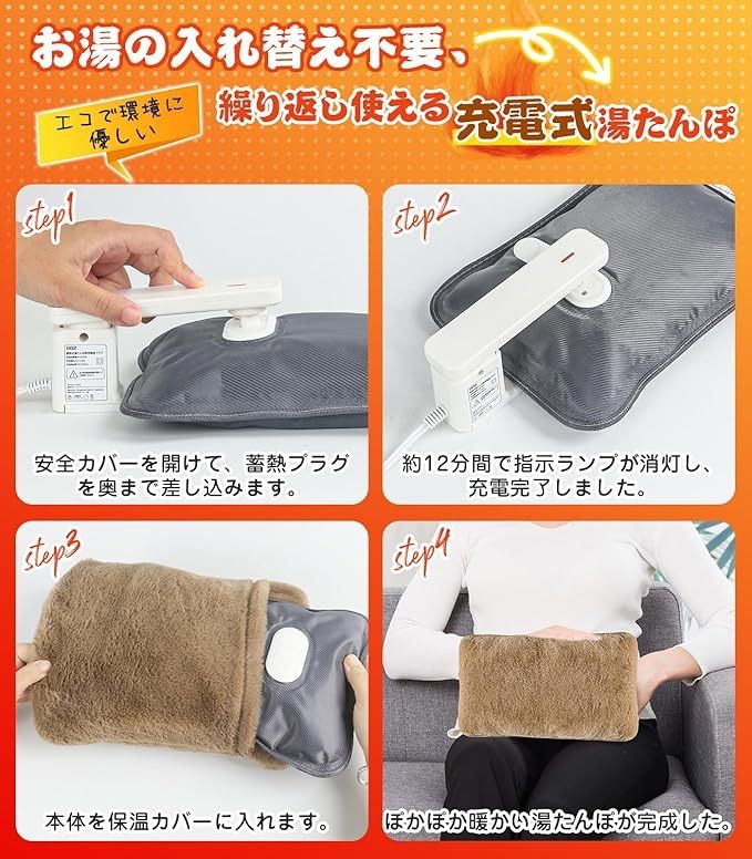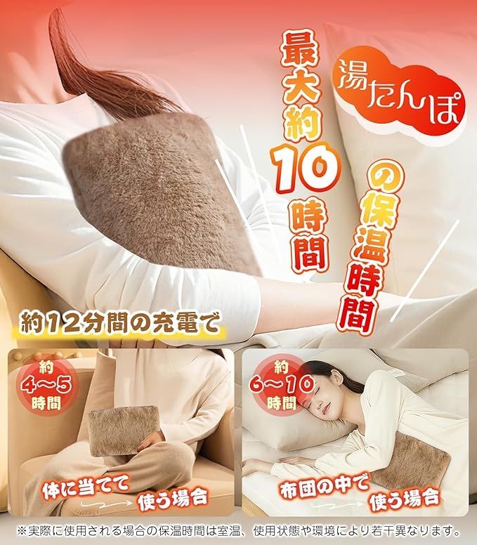 【大特価】【新品】湯たんぽ 充電式 ゆたんぽ エコ蓄熱式 電気湯たんぽ 4~10H長時間保温 省エネ 湯タンポ 防爆充電器 急速充電 過熱防止機能 ふわふわ柔らかい保温カバー付き 暖房器具 指先/足元/背中/お腹周り 防寒グッズ 冷え対策 冬ギフト