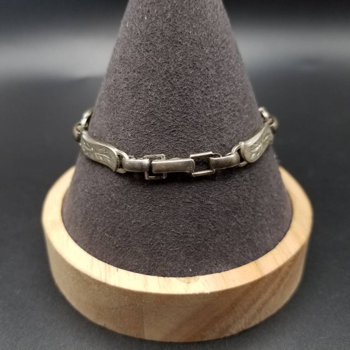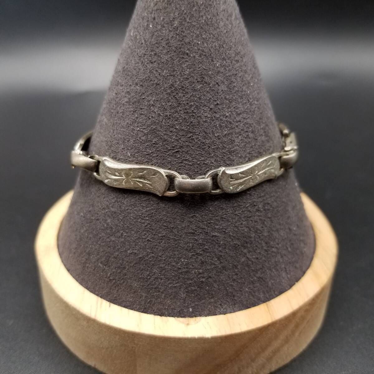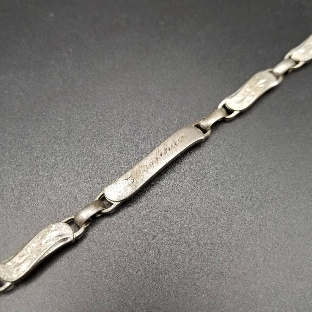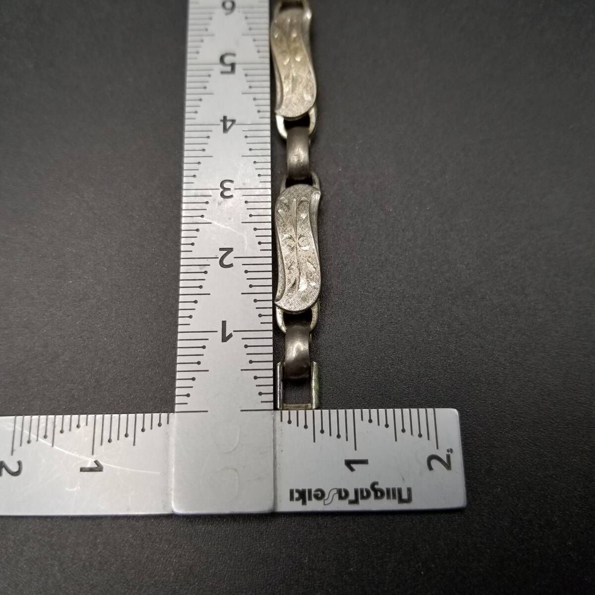 La Mode パネルチェーン リンク 925 シルバー ヴィンテージ ブレスレット 銀 フローラル エッチング ミッドセンチュリー Y23-M
