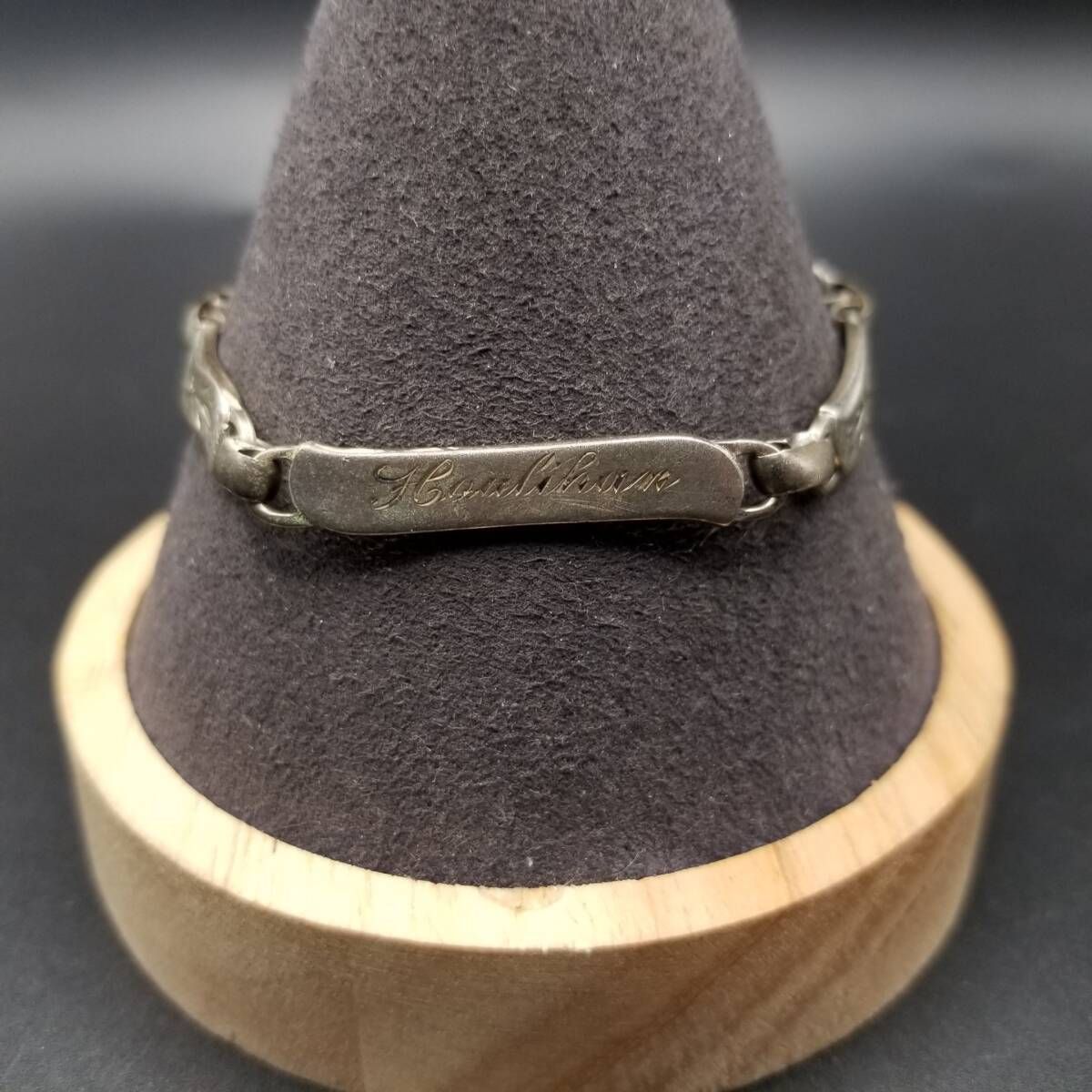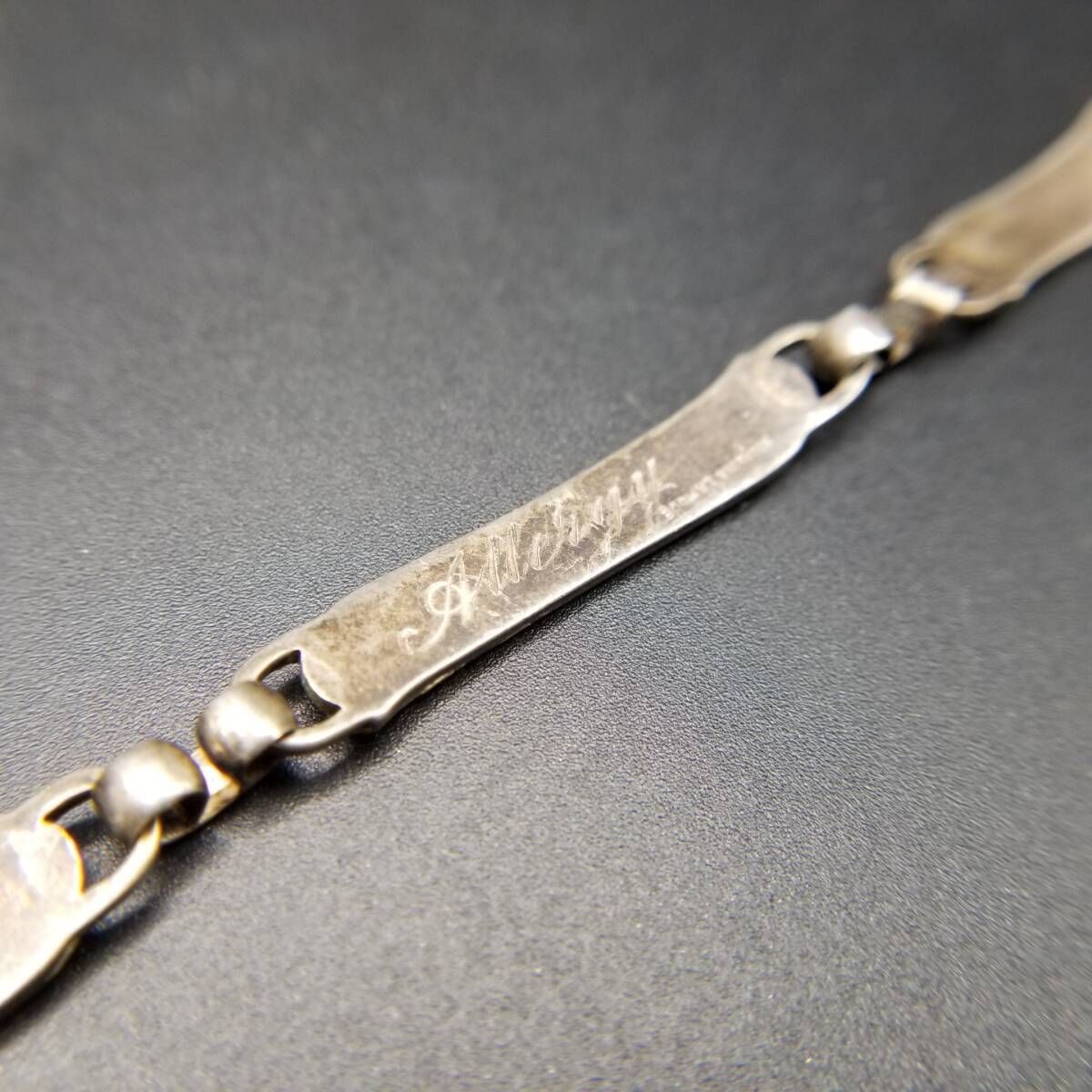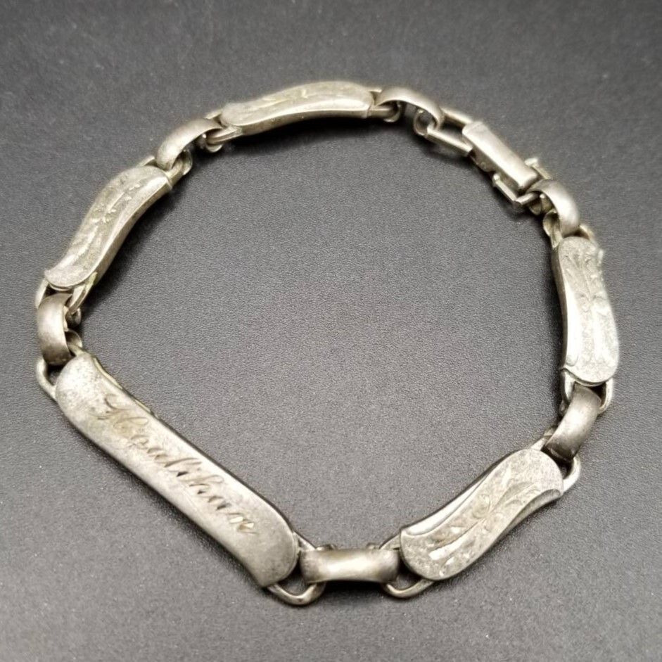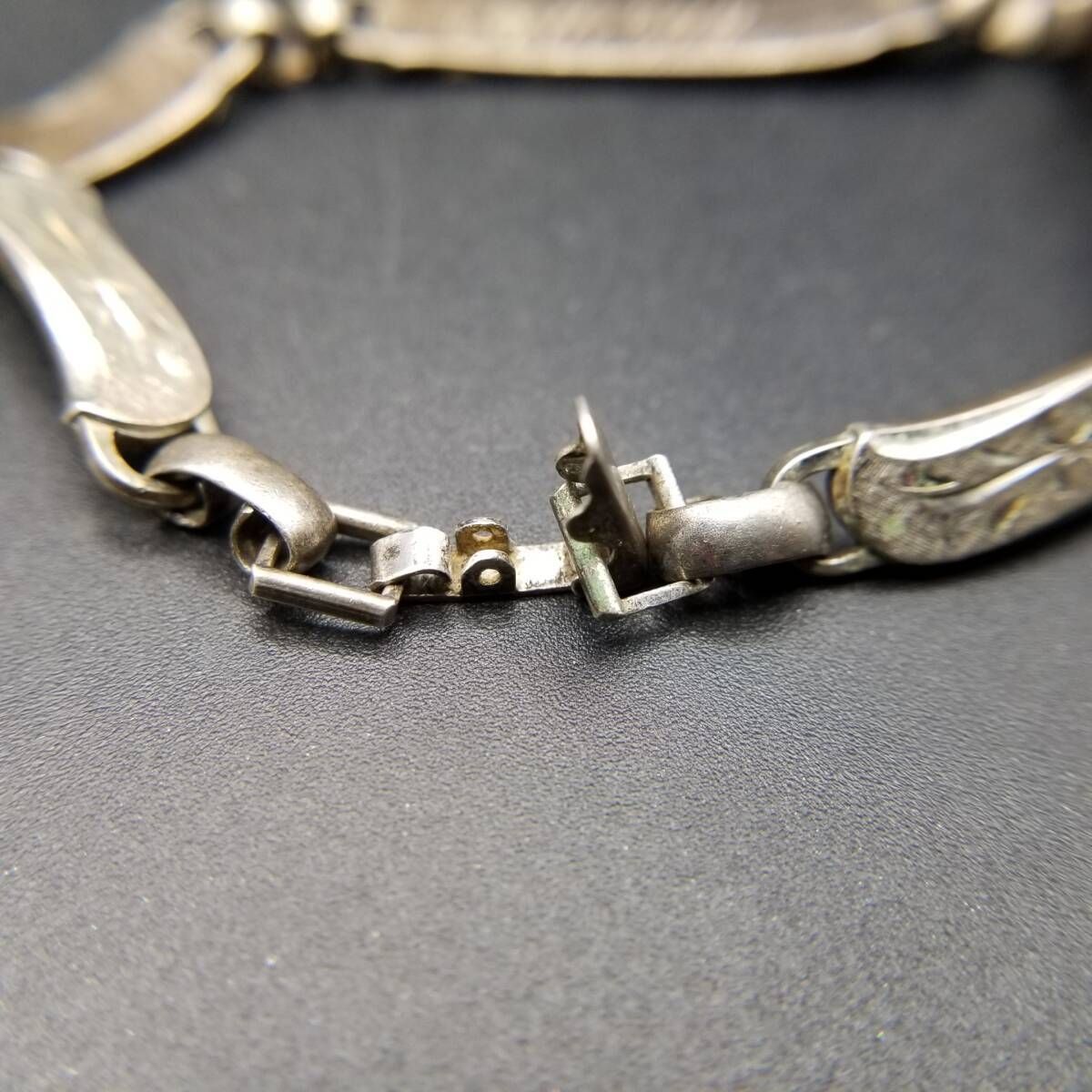 La Mode パネルチェーン リンク 925 シルバー ヴィンテージ ブレスレット 銀 フローラル エッチング ミッドセンチュリー Y23-M