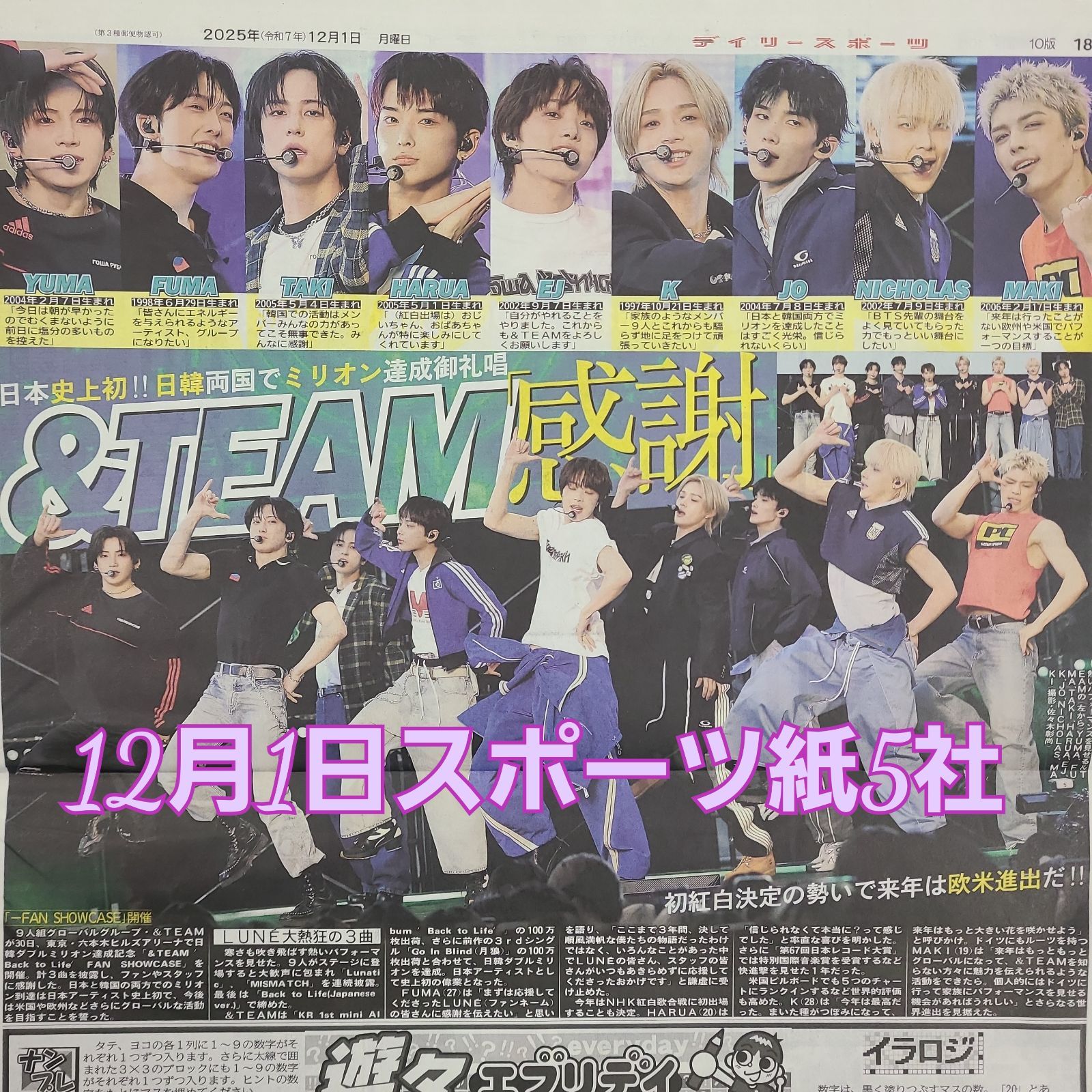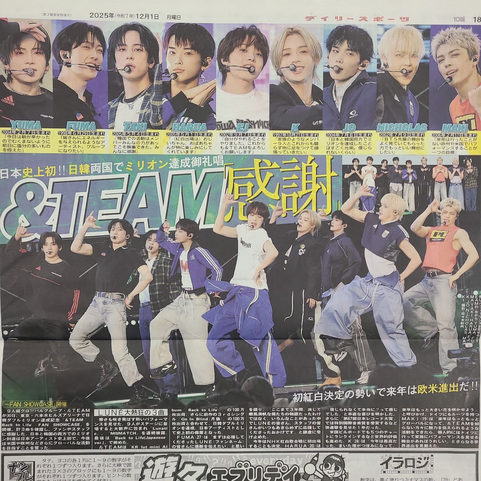 ☆&TEAM 初 日韓両国でミリオン達成 !!
