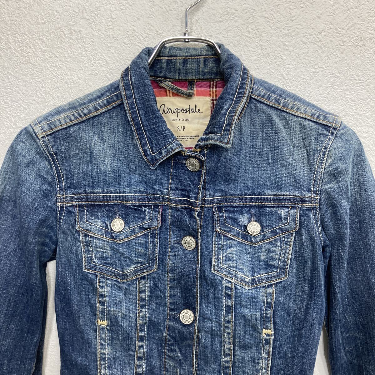 AEROPOSTALE デニムジャケット S ブルー エアロポステール アメカジ デニム 前ボタン 短丈 胸ポケット 薄手アウター 春物 a712-5077