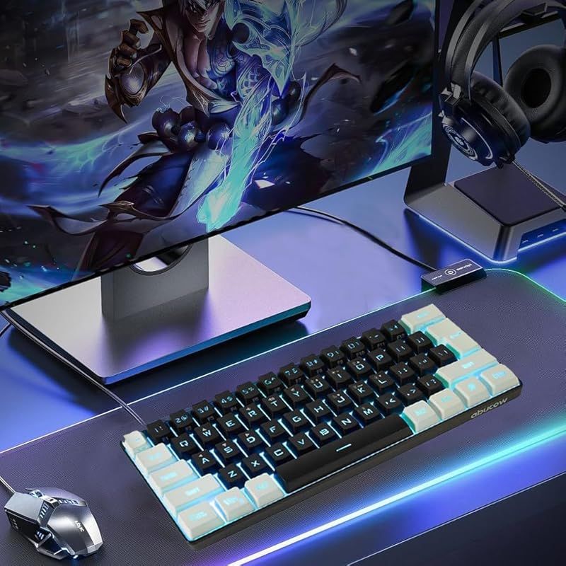 商品名:abucow ゲーミングキーボード ミニマリスト ポータブル 有線 超コンパクト ミニ 61キー RGBバックライトキーボード (黒と白)