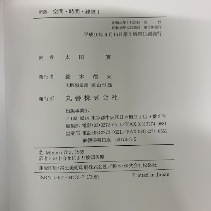 ▲01)【1点限り!】空間・時間・建築/2冊セット/S.Giedion/太田実/丸善出版/平成10年/建築/歴史/A