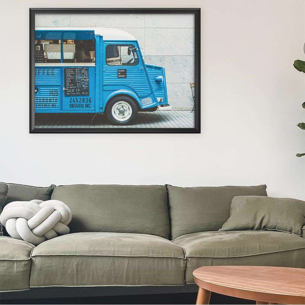 【A0サイズ(約84x119cm)】【fg-poster-903】外車 バス ブルー アートプリント ポスター インテリア デザイン 飾り 壁 西海岸 絵画 絵 壁掛け アート リビング 玄関 壁飾り 黄色 レトロ 横