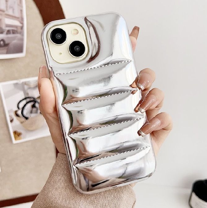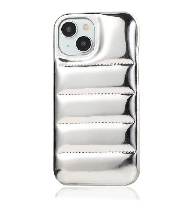ダウンジャケット風 スマホケース iPhone17 17air 17pro 17promax シルバー 韓国 メタリック 保護