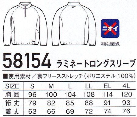 自重堂 jawin 58154 ラミネートロングスリーブ M ブラック(044) 作業服 防寒着 [ブラック(044)] [M]