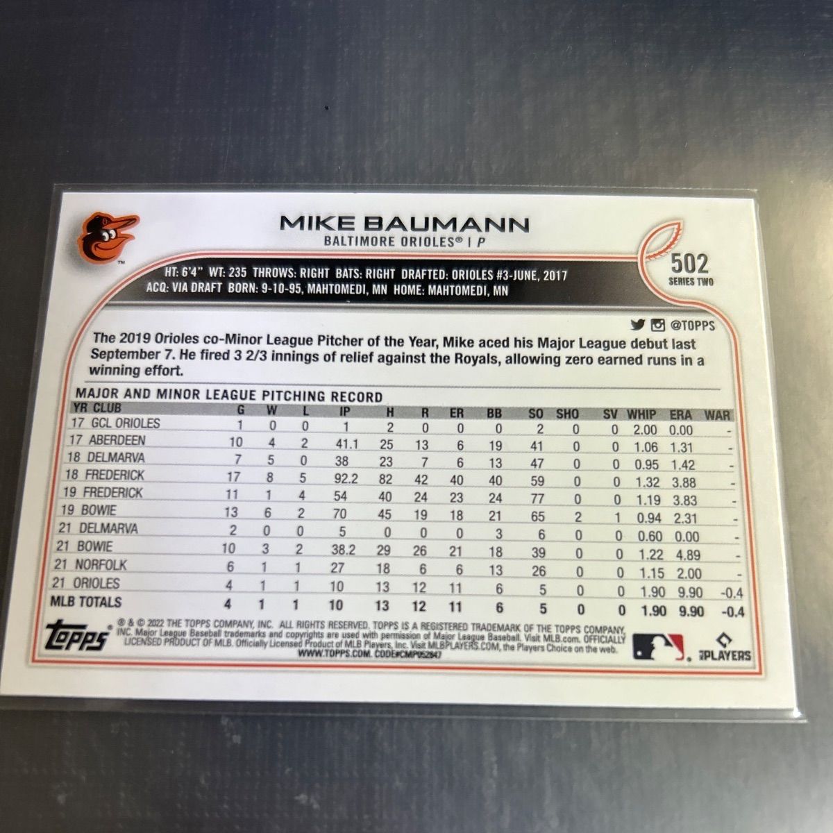 MLB 2022 Topps Mike Bauman Rookie Baltimore Orioles No,502