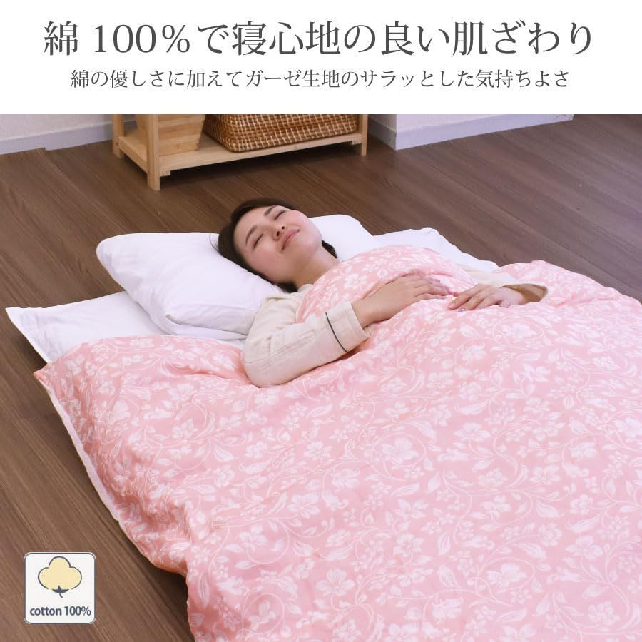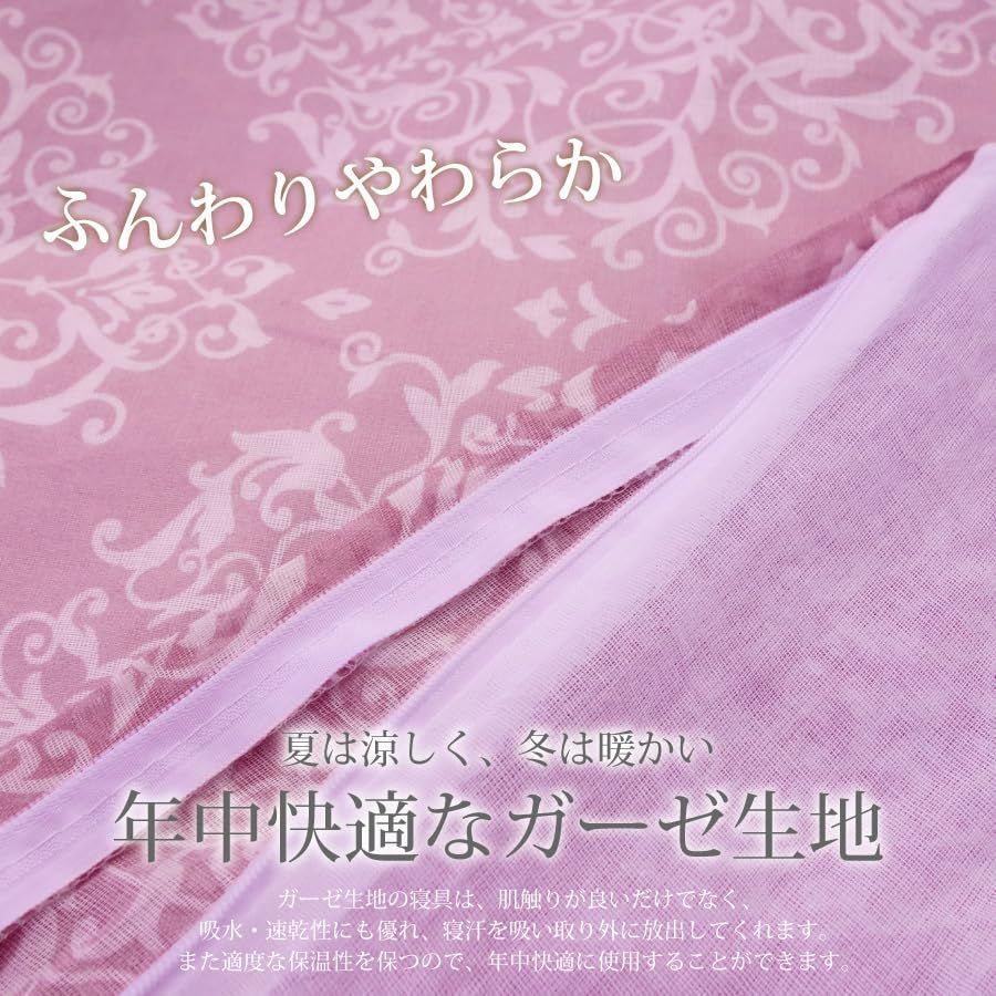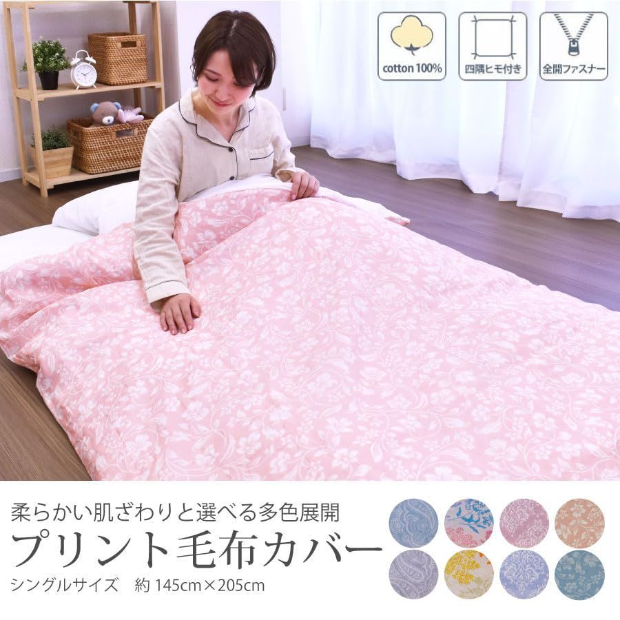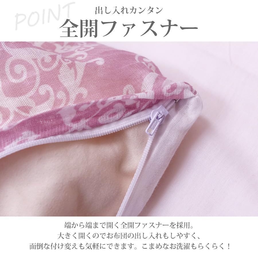 新品 ガーゼ 毛布カバー ファスナー付き 4ヶ所ヒモ付き 寝具カバー 布団カバー 模様 ペイズリー ハーブフラワー ダマスク (677・ピンク)