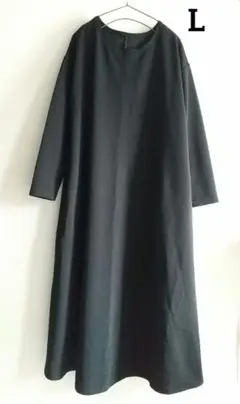 グローバルワーク エンボス ロングワンピース 長袖 ブラック L