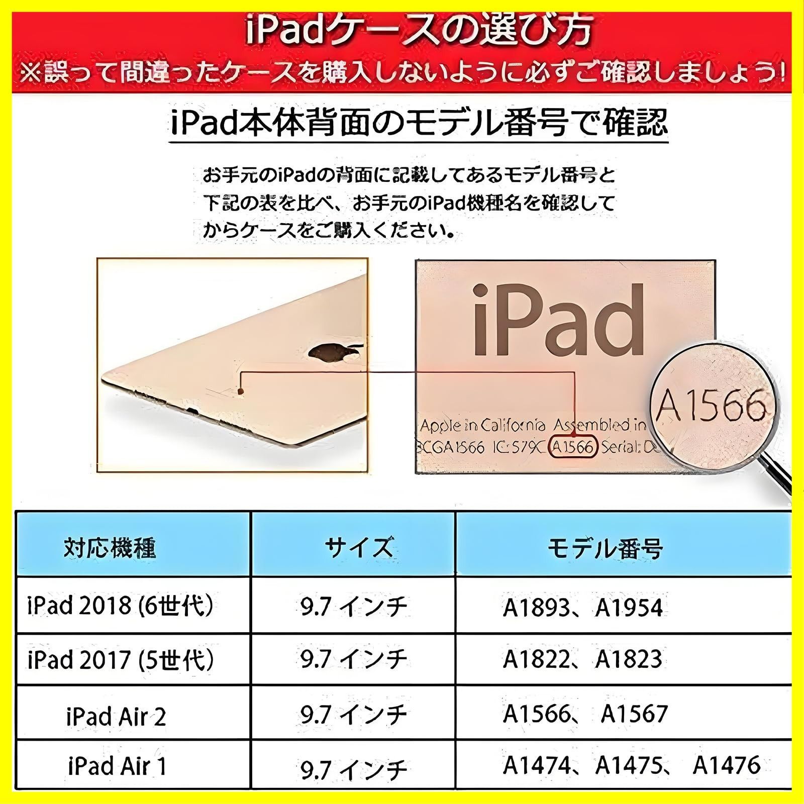 【対応機種】:2018年と2017年発売のiPad 9.7インチ(型番A1893、A1954、A1822、A1823)とipad air/ipad air2(型番A1474、A1475、A1476、A1566、A1567)。※2016年発売のiPad Pro9.7(型番A1673/A1674/A1675)に対応不可!