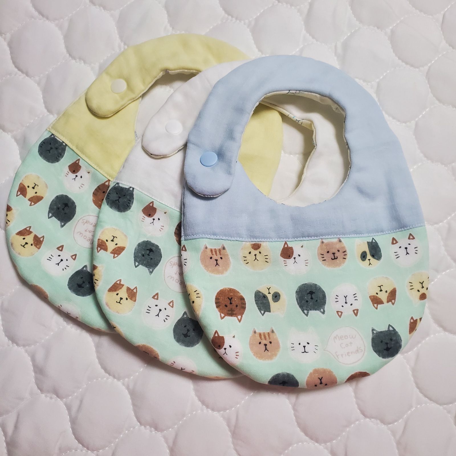 ◎赤ちゃんに優しい両面ダブルガーゼ ◎タオルを挟んだ厚みのあるスタイです とっておきのお出かけ用…ではなく 毎日ガンガン使えるコスパ最強を目指しております! 実用的、普段使い、保育園用スタイ まとめ買い、発送についてはSHOP情報を ご一読ください 表裏ダブルガーゼ 間にWガーゼ1枚と260匁の綿100%タオルを挟んだ、厚めのふんわり柔らかいハンドメイドスタイです。 首回り 約26センチ 横幅 約18センチ 首下 約12センチ サイズの誤差はご容赦ください。 首回りにはタオルを挟んでいないので、もたつきません。 返し口はミシン縫いになっています。 プラスナップ留めです。手を添えて優しく扱ってください。 水通し後に作成しています。ネットに入れてのお洗濯をお願いします。 同じ生地でも柄の出方が異なります 裏面は主にシンプルな柄で作っております オーダーはしていません 生地があれば再販しますので売り切れの際は「入荷時に通知」をクリックお願いいたします ラッピングサービスはしていません 素人のハンドメイドの為、ご家庭用の普段使いとして購入頂けると安心します‬ 心を込めてお作りしておりますが歪みやヨレ、糸の始末の至らない点もあるかと思います。ハンドメイドにご理解いただける方のご購入をお願いいたします 生地に薄茶色の繊維や黒い点々が混ざっていることがありますが自然のものですのでご安心ください しえスタイ 乗り物 恐竜 星柄 くるま 電車  花柄 動物 どうぶつ ネコ ねこ 犬 ワンコ ユニコーン スイーツ柄 ベビースタイ よだれかけ たまご型 ベビー用品 ベビー 新生児 出産準備 赤ちゃん 男の子スタイ 女の子スタイ 可愛いスタイ かわいい ダブルガーゼ お肌に優しい イベント 記念品 ハンドメイドスタイ ベビービブ ふわふわスタイ bib ナチュラル シンプル ベビーグッズ