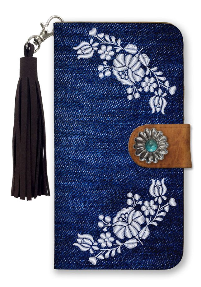 Xperia 5 SO-01M SOV41 803SO ケース 手帳型 エクスペリア5 スマホケース フリンジ ストラップ付 コンチョ 可愛い 花柄 フラワー 刺繍 プリント タッセル デニム柄 ピンク イエロー カラー10