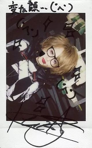 【中古】生写真(男性) ☆A&D/KENZy/直筆サイン・メッセージ入り「変な顔・・・」・横型・バストアップ・衣装白黒・手袋・眼鏡・両手丸/生チェキ