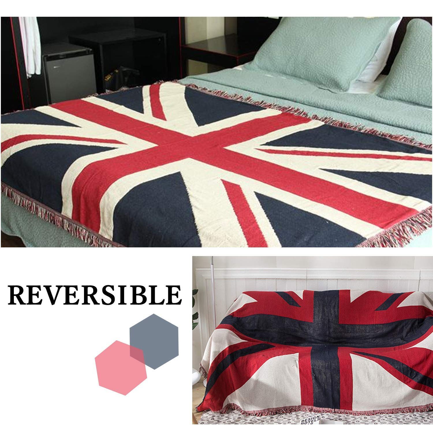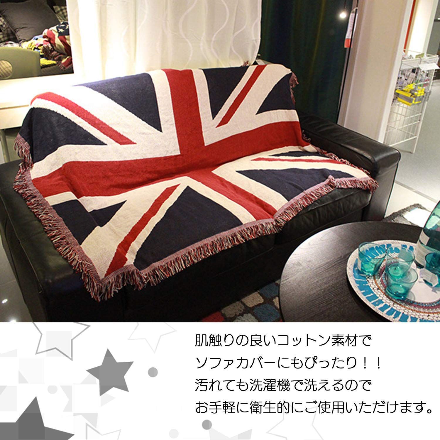 【送料無料 】イギリス国旗 モデルノ ラ テール コットン 素材 130cm×180cm ベッド ソファー マルチ カバー テーブル クロス フリンジ 付き ラ