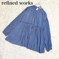 リファインドワークス とろみ プリーツ ペプラム ブラウス ブルー
