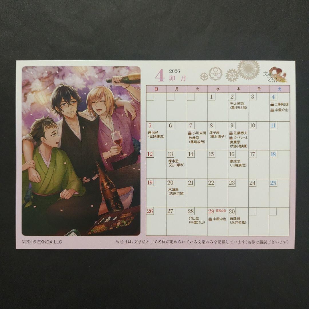 4月 オリジナルカレンダー 文豪とアルケミスト 書店コラボ