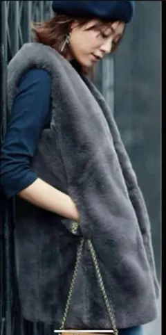 上品ヨーロッパ製※定価8万◆ブルガリア発※RISELIN ファーコート ミンク混 保温 キラキラ 気品 ブローチ付 毛皮ジャケット レディース L